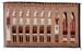 brown, sienna, mustard, and rust are accednted with a sparing use of pale, milky colors including rose, green, blue, white, and lilac.