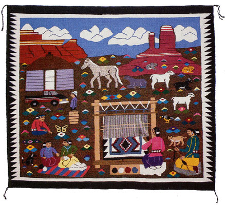 A Pictorial rug portays a bit of Navajo reality; a woven journal of the features of a weaver's daily life.